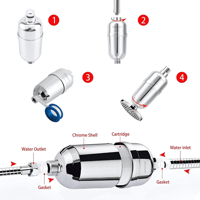 The Advanced Shower Filter is a cutting-edge filtration system that employs a 20-stage process to remove impurities such as chlorine, bacteria, rust, limescale, sand, and heavy metals, delivering cleaner, healthier water for your shower.