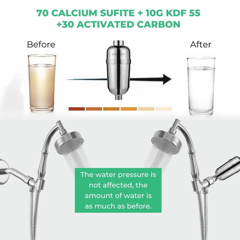 Transform your shower with crystal-clear, filtered water while maintaining full water pressure. Our advanced filtration system removes impurities like chlorine, heavy metals, and rust, ensuring a healthier, more refreshing shower experience without compromising the water flow or pressure.