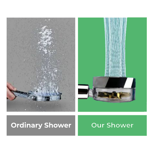 - 212% inrease in water velocity compared to standard shower heads
